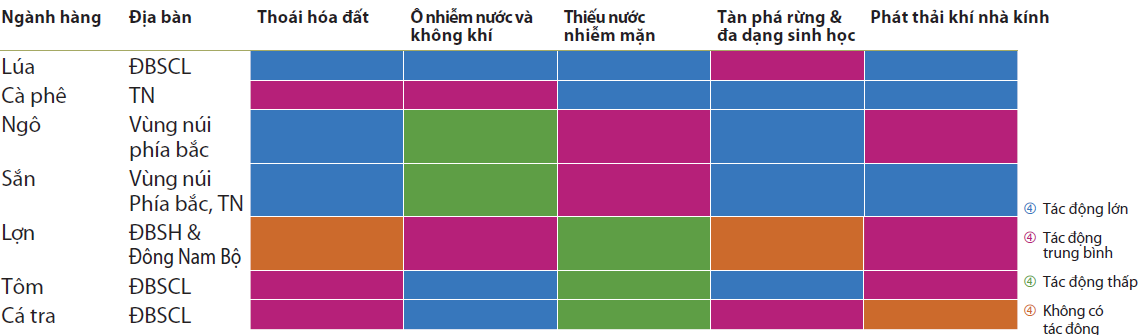 Biểu 7: Điểm nóng môi tường nông nghiệp Việt Nam. Nguồn: Ngân hàng thế giới.