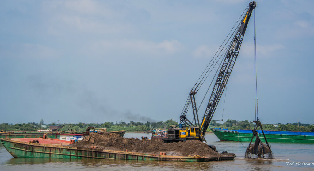 Khai thác cát ở ĐBSCL. Ảnh do Ted McGrath chụp, đăng trên Flickr . Được cấp phép theo CC BY-NC-SA 2.0.